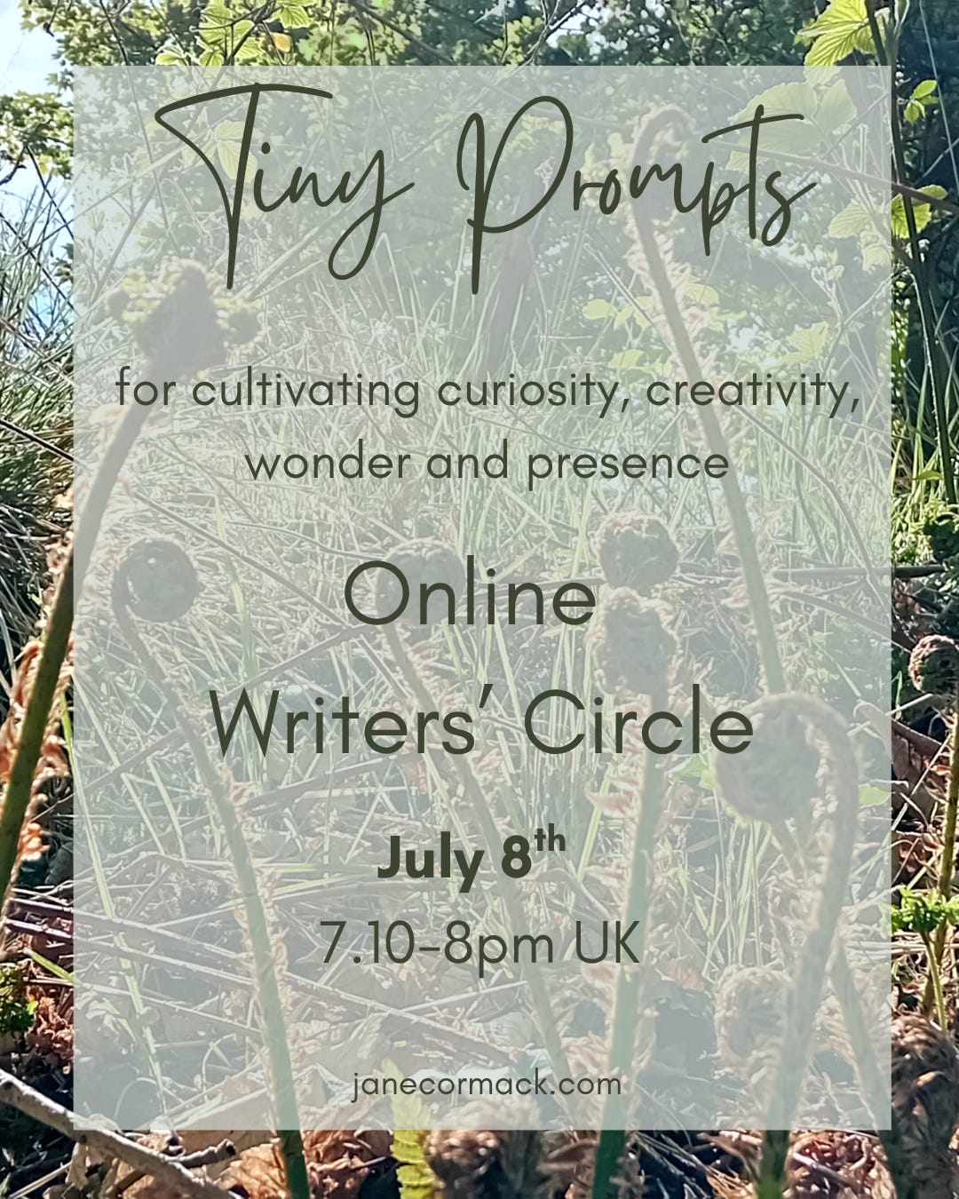 Tiny Prompts Writers’ Circle is happening tomorrow, Tuesday the 8th of July, from 7.10pm - 8pm UK time, we’ll gather in a small, cosy circle, ready to write, create and connect prompted by a seasonal theme. It costs just £9 to join and if you’re in a flow, you can continue after the session, and still have time to go outdoors to enjoy the long, light evening!